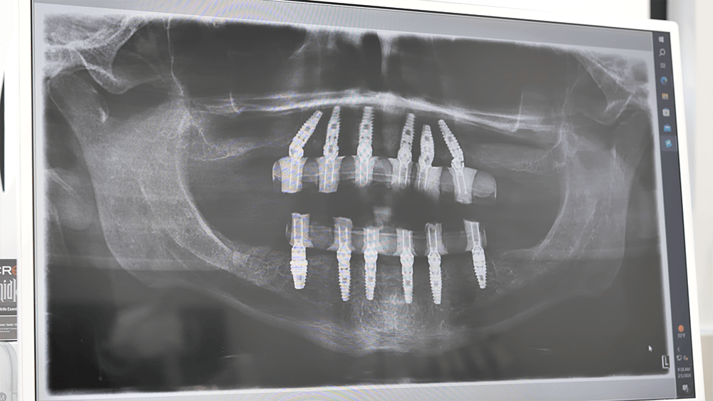 We utilize “All-on-X” which means typically 6 or more. Our goal is to have the most predictable All-on-X implants, long-term success as possible, so we prefer to over-engineer rather than do the bare minimum. In a scenario where a dental implant has problems, a prosthesis supported by more than four dental implants can still be maintained and supported predictably and the patient does not have to wear a removable denture.